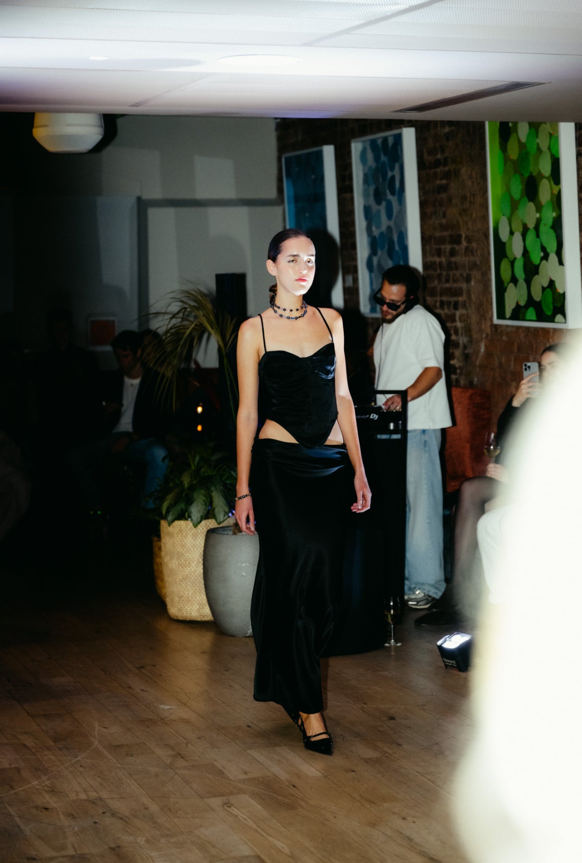 Best paired with the Chiara skirt or Caprise Trousers. Made from Japanese silk satin sourced locally from a deadstock fabric supplier. Made in London. Modelled by a size 8 UK.