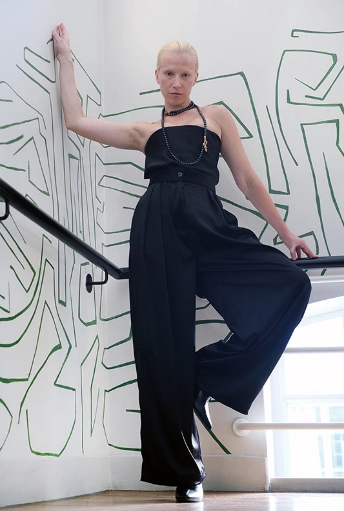 A pleated, wide and flared silk trousers. Perfect for a formal or fancy event. Or just for the fashionable city girl. Made from Japanese silk sourced locally from a deadstock fabric supplier. Made in London. Modelled by a size 8 UK.