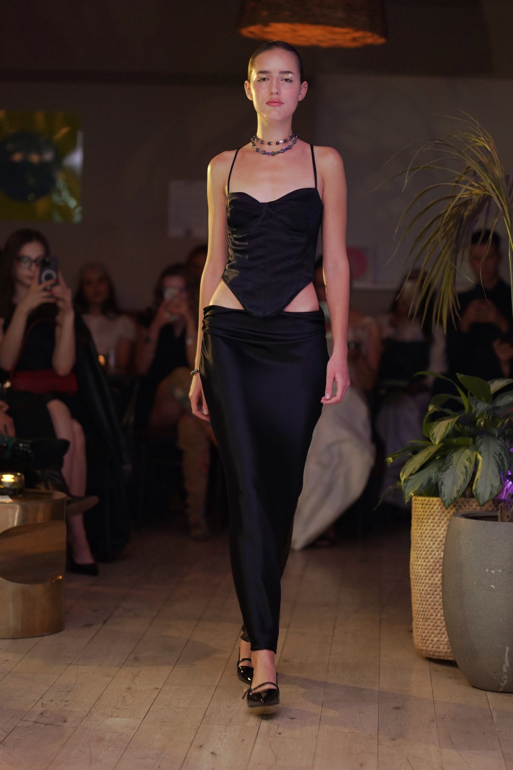 Made from Japanese silk sourced locally from a deadstock fabric supplier. Made in London. Modelled by a size 8 UK