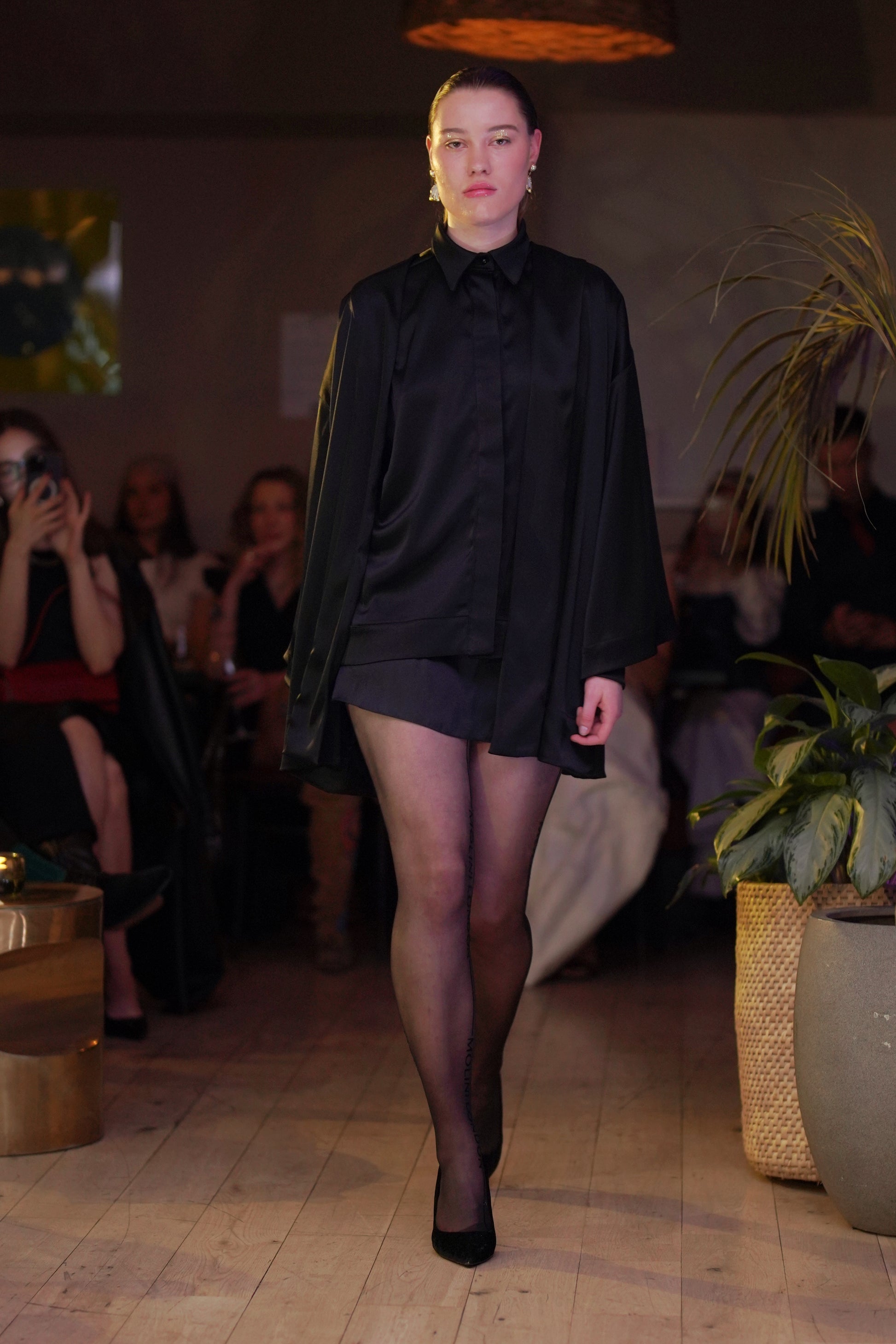 Made from Japanese silk sourced locally from a deadstock fabric supplier. Made in London. Modelled by a size 8 UK